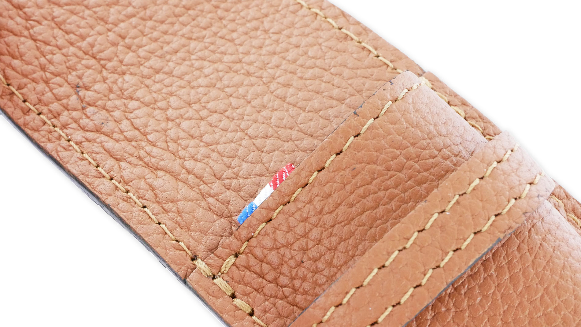 Schließlich sorgt die Lederlappe für einen sicheren Sitz. Außerdem zeigt er ein markantes Detail: 🇫🇷 eine diskrete französische Flagge unter der Klappe, ein Symbol für Qualität und Fachwissen.