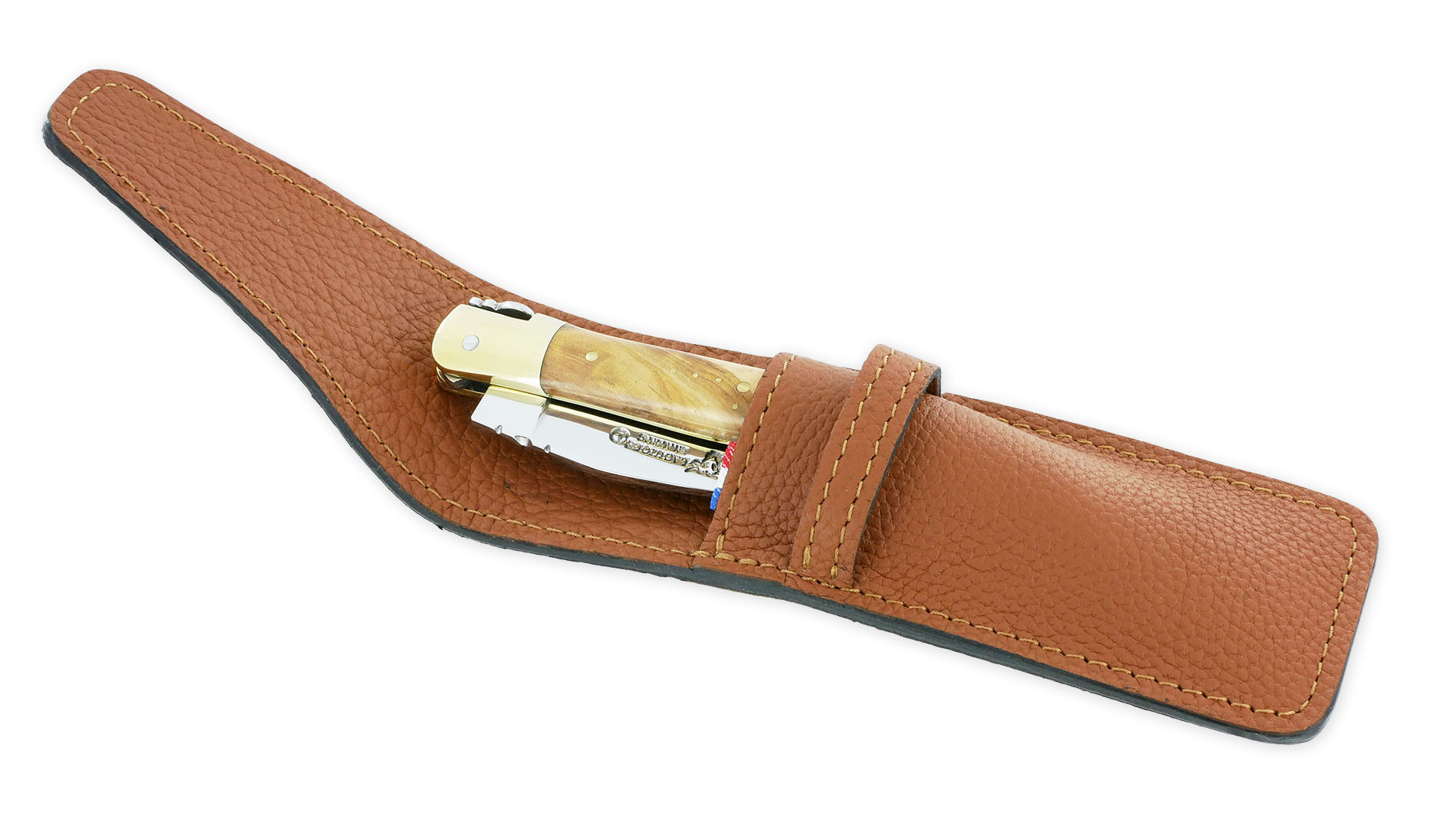 Laguiole Lederhülle mit Korn Braun Luxe – elegantes Accessoire mit französischer Flagge