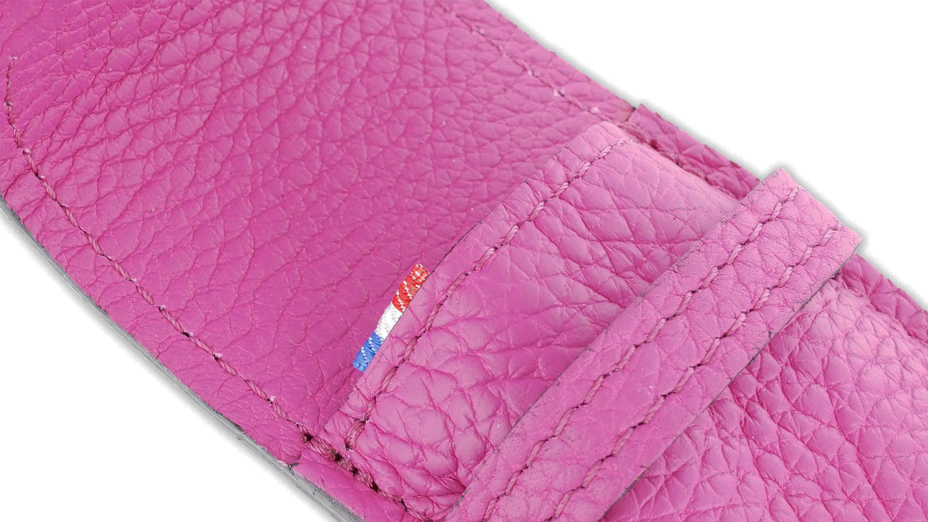 Étui cuir Laguiole Rose Fushia grainé Luxe – Accessoire élégant avec drapeau français