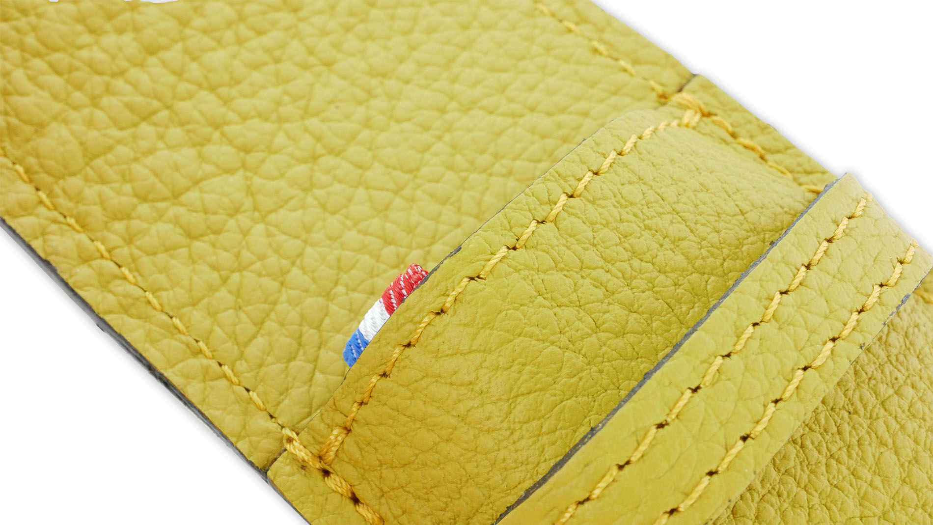 Schließlich sorgt die Lederlappe für einen sicheren Sitz. Es offenbart auch ein charakteristisches Detail: 🇫🇷 eine diskrete französische Flagge unter der Klappe, ein Symbol für Qualität und Fachwissen.
