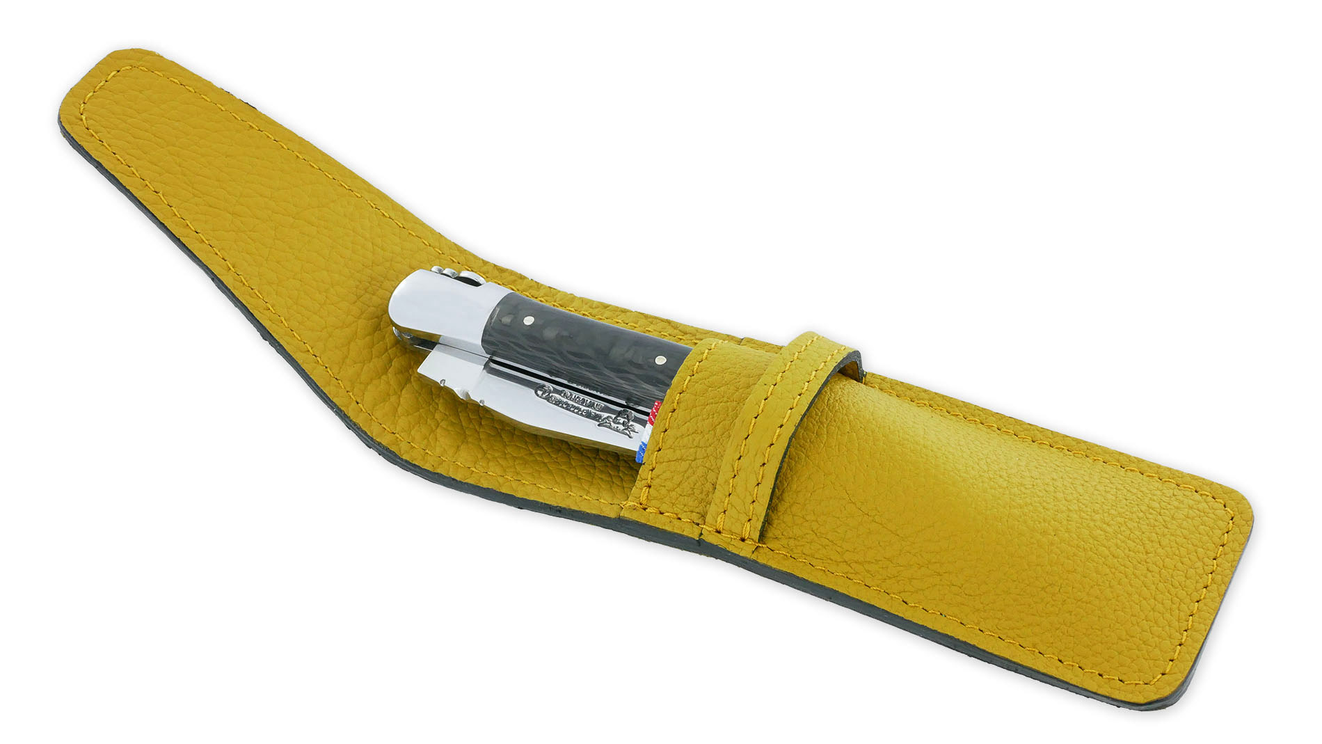 Senfgelbe, luxuriöse Lederscheed mit Maserung – Für Laguiole-Messer 10 bis 12 cm