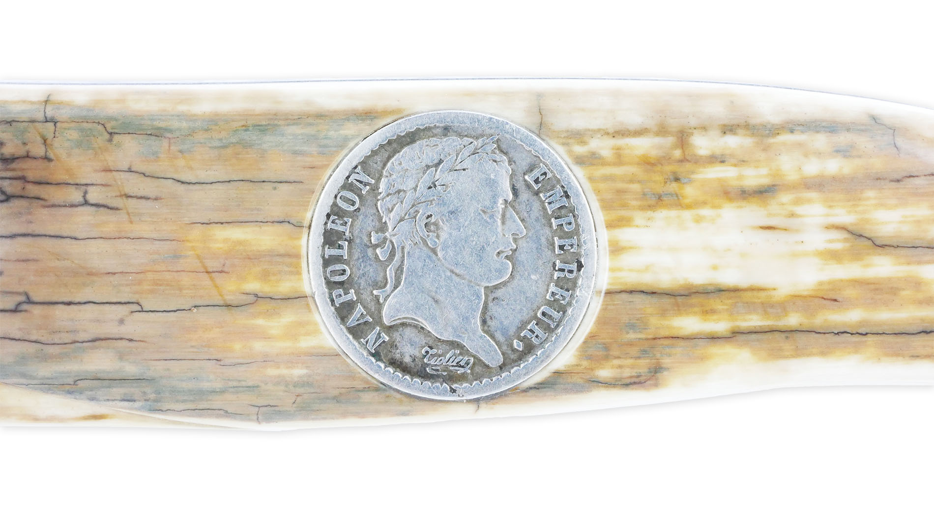 Full Handle in Bluish Mammoth Ivory Crust with Insert Silver Coin 1/2 Franc Napoleon