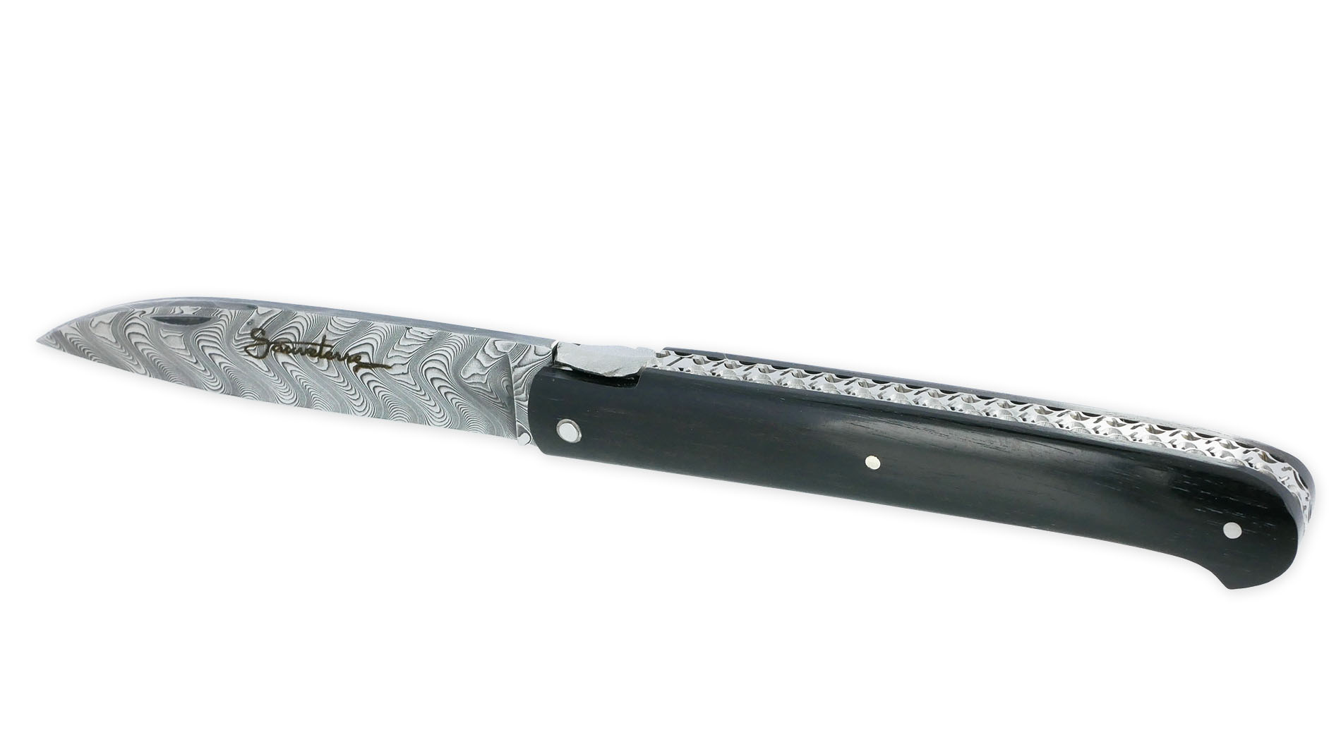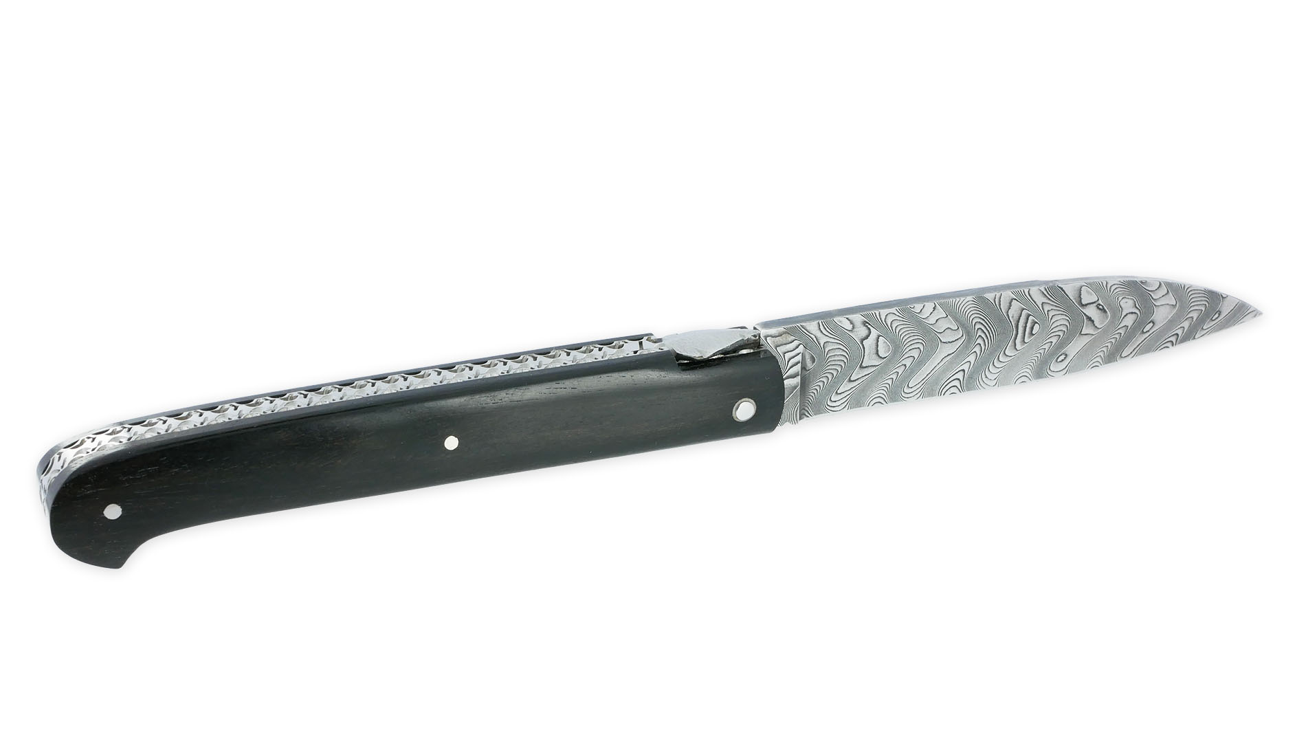 Ce couteau Sauveterre en Ebène et Damas est bien plus qu’un simple couteau pliant :